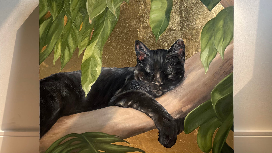 All the paintings in the Golden Hour collection were created using high-quality oil paints and metal leaf on deep wood panels.