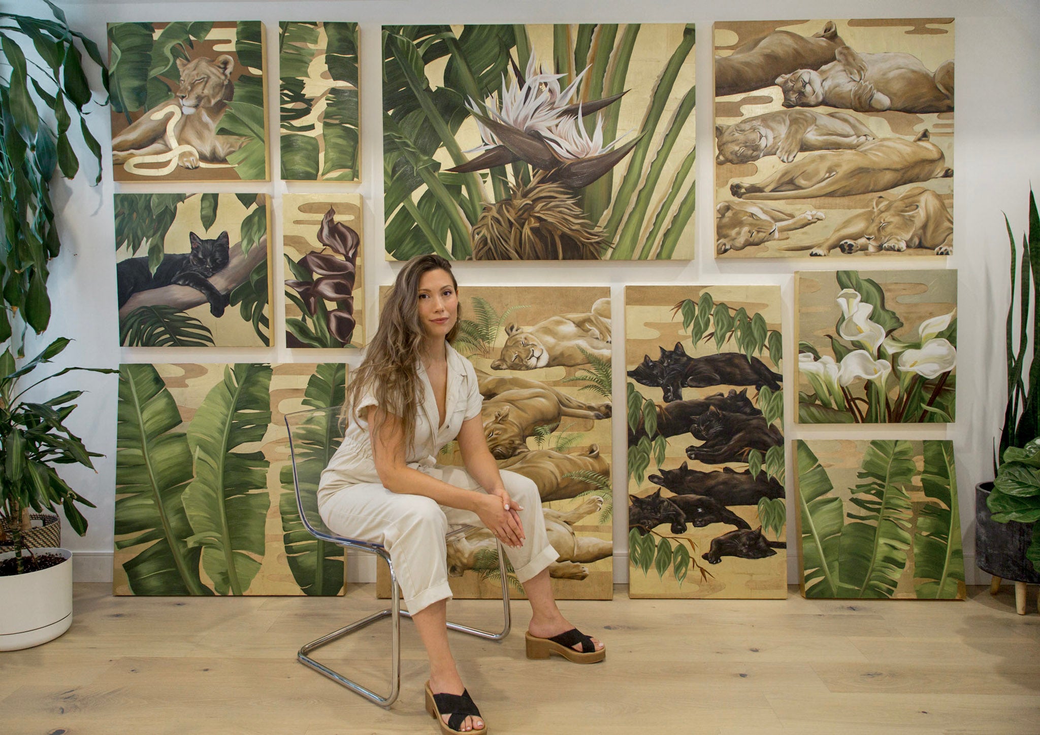 Botanical and animal paintings that evoke the rich warmth and energy of golden hour.