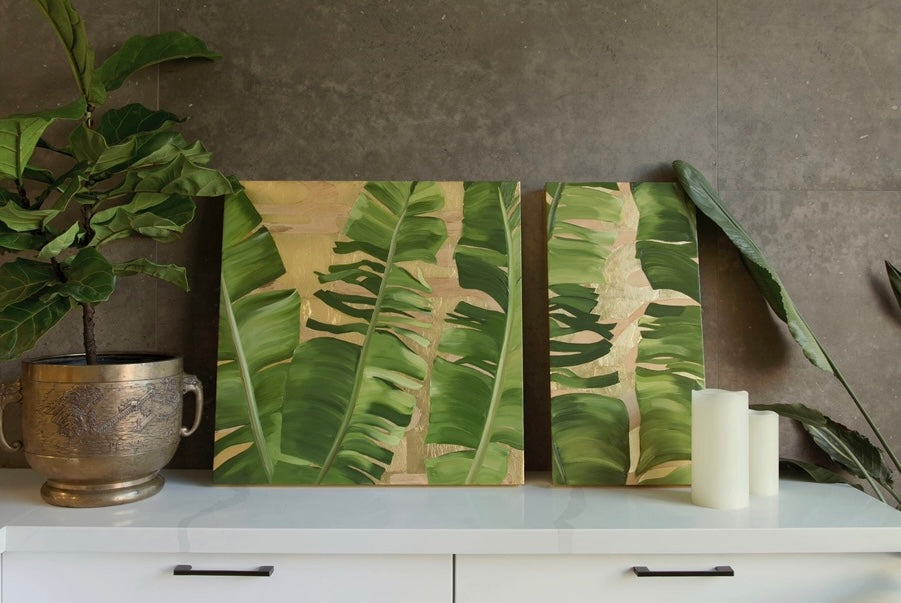 All the paintings in the Golden Hour collection were created using high-quality oil paints and metal leaf on deep wood panels.
